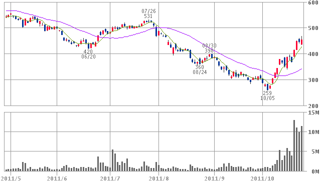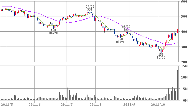 BUY 11/10/21 - 11/10/27 401 - 436(-8.7%) 1ヵ月ブレイクアウト