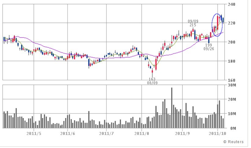 10/03 - 10/06  218 - 220  +0.9%