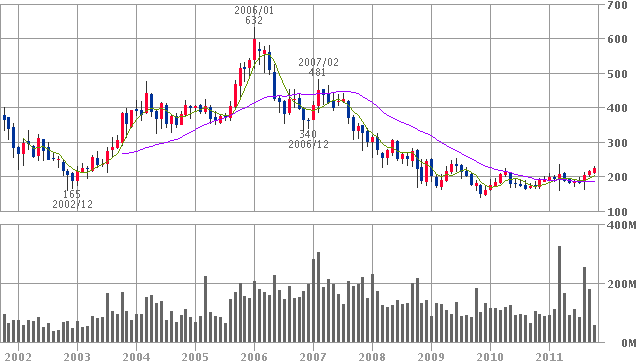 買った理由は、10年チャートだとヒゲ無視するとブレイクしそうだったから。