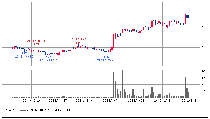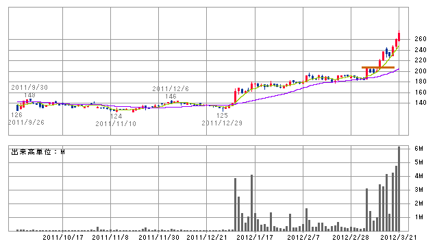 一度、大きな出来高と陽線できてから、数ヶ月後、2度目は大きく上昇することが多いね。